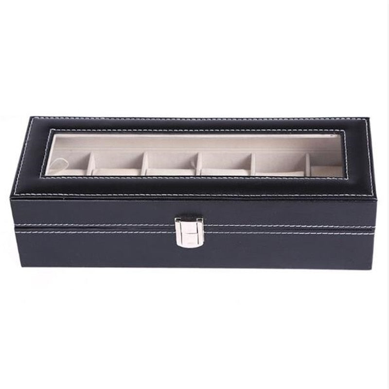 This simple black case holds and protects 6 of your finest watches. A clear lid allows you to admire your collection and choose which piece you'll wear.
