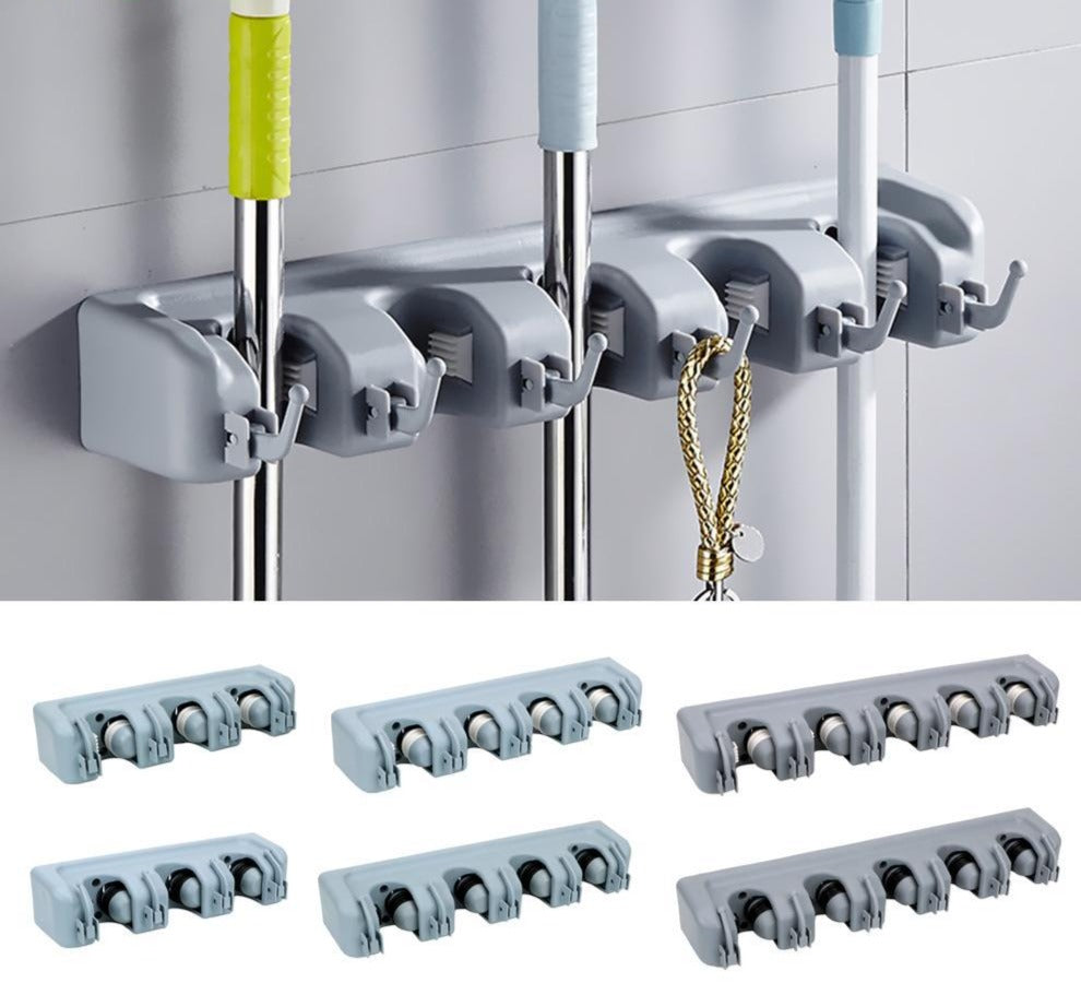 Our Multi-Functional Mop Storage Rack Hook has a built-in spring, surface anti-skid buckle design, save space and keep the mops and brooms out of the way. Suitable for the kitchen, balcony, living room, and bathroom.
